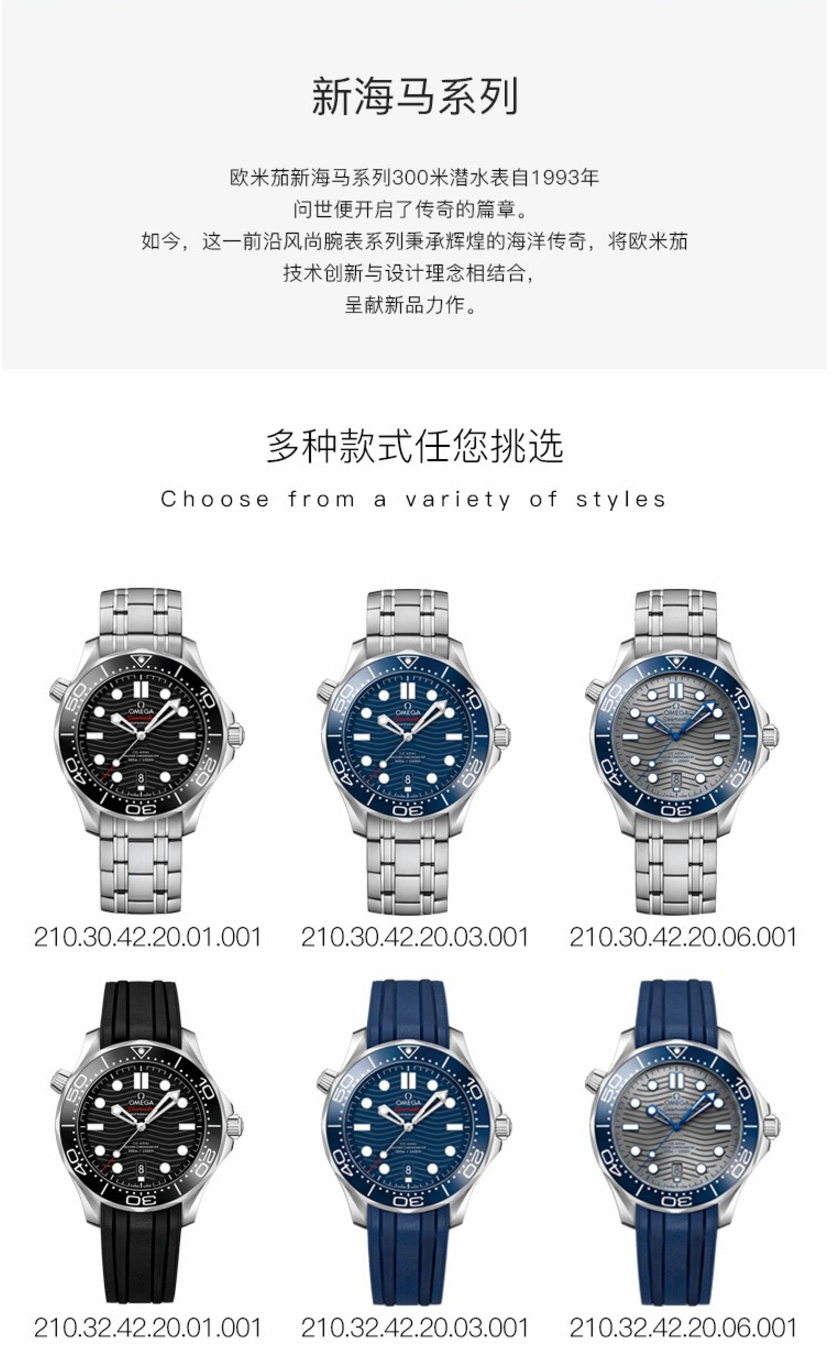 【OMEGA】欧米茄天文台男表210.30.42.20.06.001新款海马300机械表